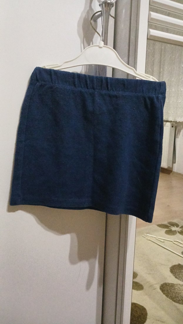 Koyu mavi denim mini etek, rahat ve sade bir tarz sunar. Günlük kullanıma uygun, normal boyda ve vücuda oturan kesimdedir.