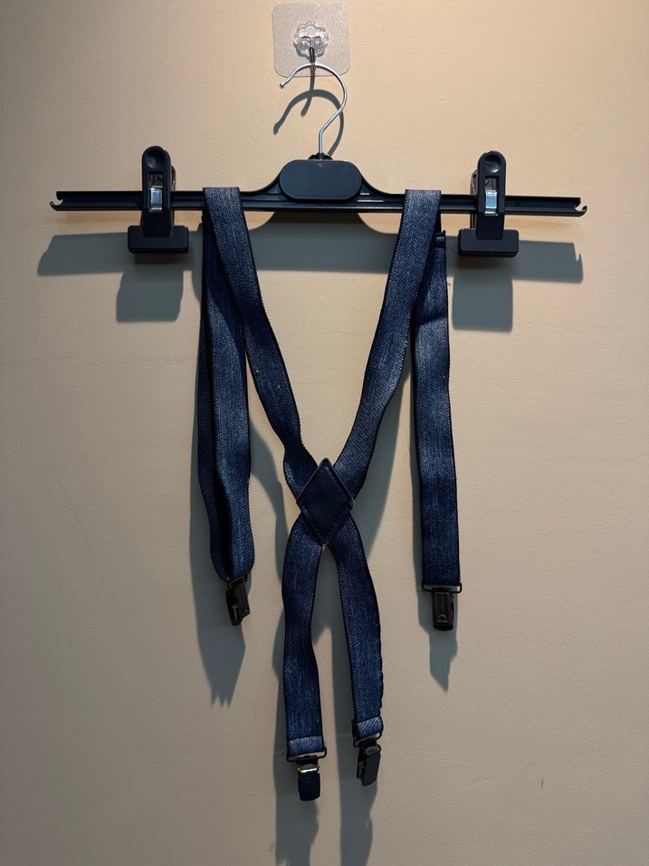 Koyu mavi denimden yapılmış, tokalı ve desensiz pantolon askısı. Biker tarzı ile trend bir görünüm sunar. - Dr Who hayranları