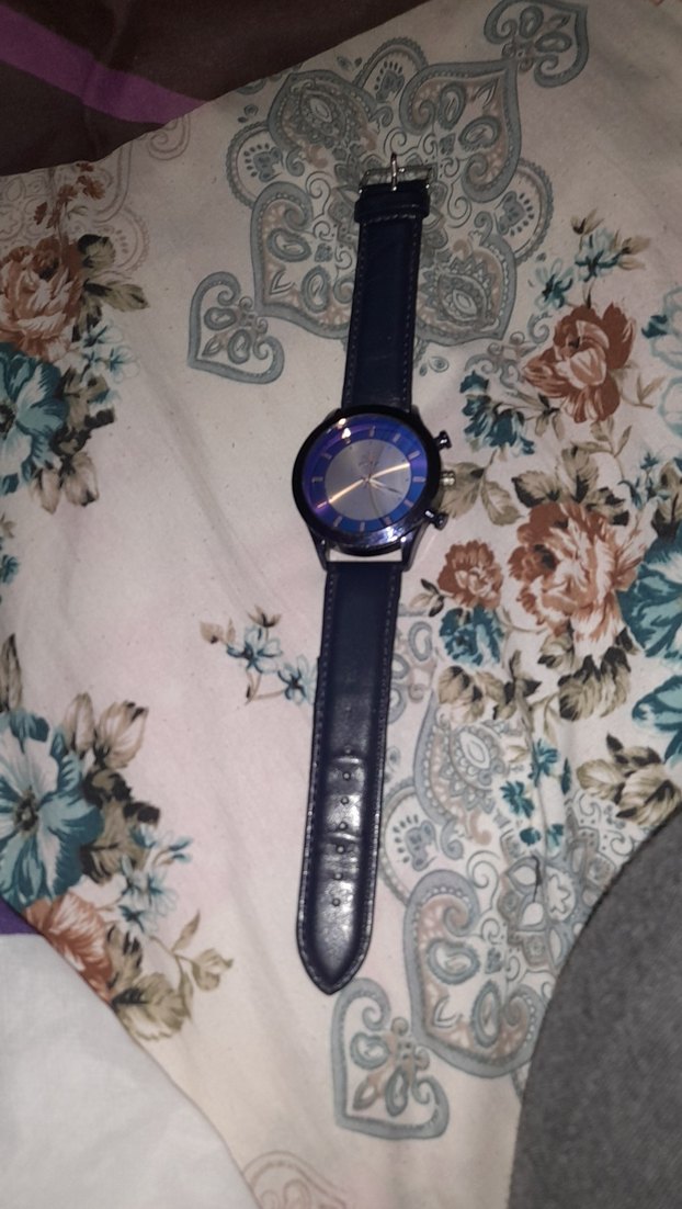 Koyu mavi deri kayış ve yuvarlak kadranlı erkek saati, gotik stil ile iş dünyası tarzını birleştirir. pili bittik ona göre alım yapın lütfen ⌚