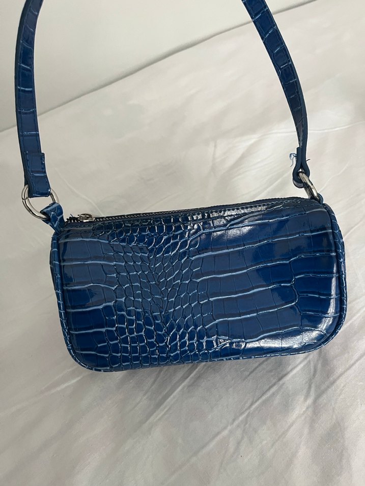 Koyu Mavi Deri Yılan Desenli Kadın Çanta