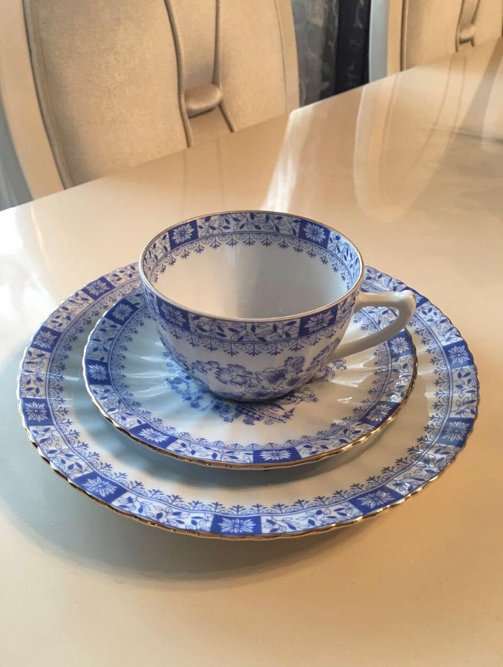 Koyu Mavi Desenli Fincan ve Tabak Seti bavaria trio