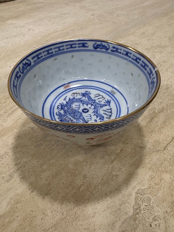 Koyu Mavi Desenli Seramik Kase