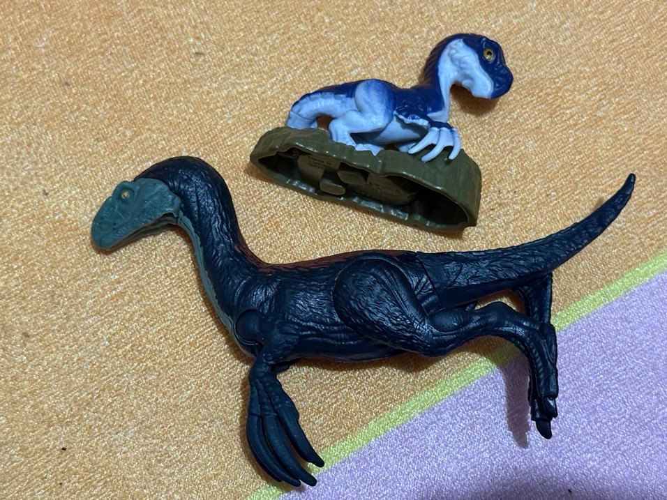 Koyu mavi renkli, detaylı dokulara ve hareketli parçalara sahip dinozor aksiyon figürleri.