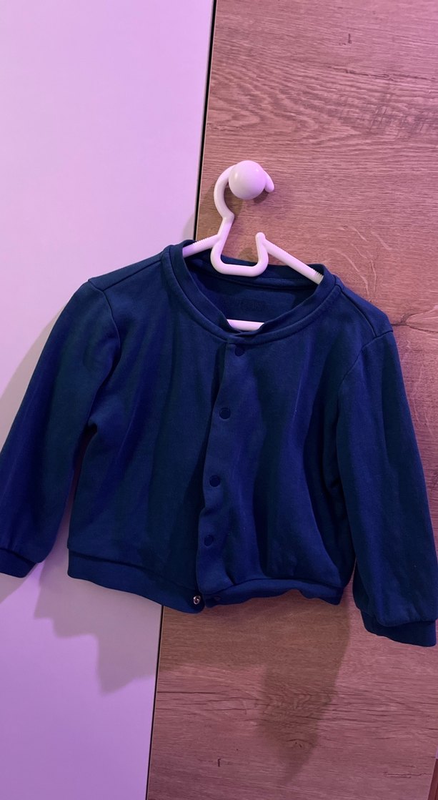 Koyu mavi kız çocuk ceketi, yuvarlak yaka ve düğmeli ön yapıya sahiptir. Yumuşak ve sıcak kumaştan üretilmiş, rahat bir kullanım için bol kesimdir. Desensiz sade tasarımıyla gündelik stile uygundur.