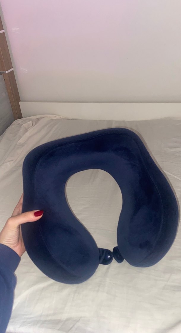 Ortopedik sekil alan Koyu mavi, desen içermeyen, hamilelik ve emzirme döneminde konfor ve destek sağlayan yumuşak yüzeyli yastık. Uyku yastigi kilifi yikanip gonderilecektir takip cikarilabiliyor fermuarli