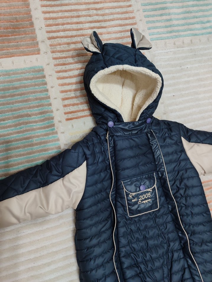 Koyu mavi renkli erkek bebek tulumu, içi yumuşak kürk detaylıdır. Nakışlı desenleri ve streetwear tarzıyla sıcaklık sağlar. sadece 1 kez kullanıldı