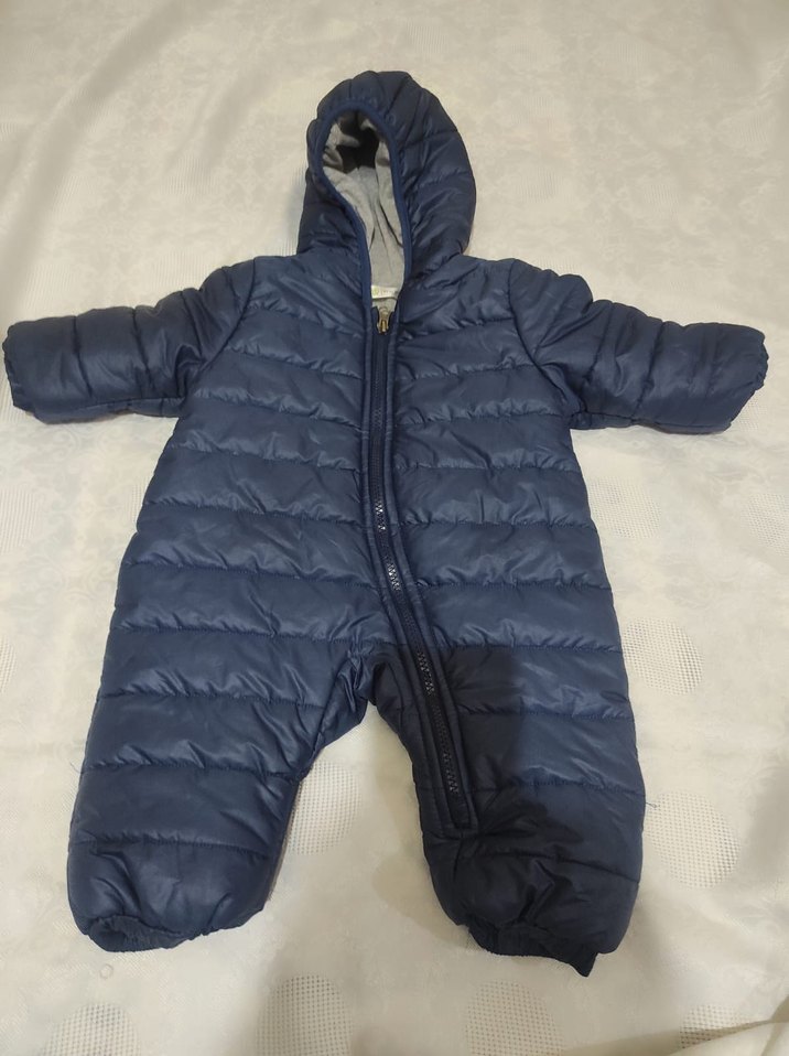 Koyu mavi renkli, kapüşonlu ve fermuarlı, yumuşak ve sıcak polar kumaştan yapılmış erkek bebek tulumu. Sokak stili için uygundur. ❄️