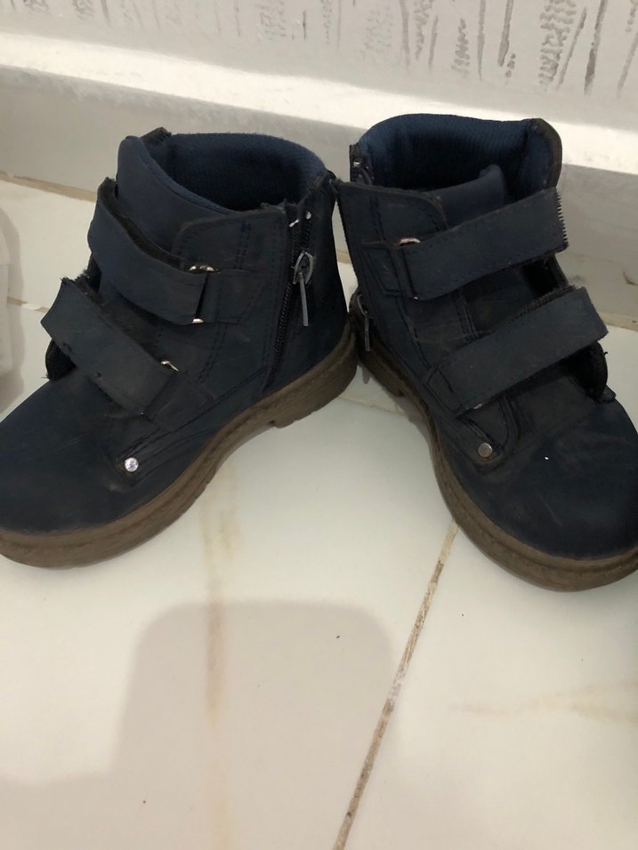Koyu mavi renkte, kauçuk malzemeden yapılmış, sokak stili erkek çocuk botu. Erkek çocuk botu lacivert renk 26 no dur temiz kullanıldı bir deformesi yoktur oğluma küçük geldiği için satıştadır sapasağlamdır az bişey kirlidir silinip yıkanırsa tertemiz olur ✅ iade yoktur üründe alana hayırlı olsun