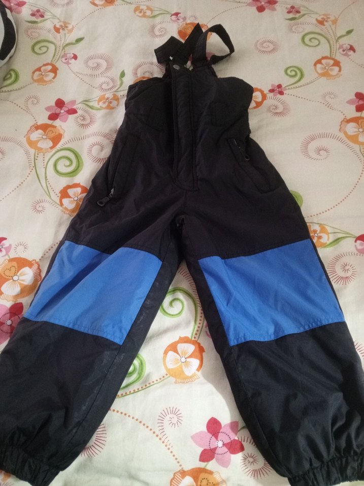 Fermuarlı ve askılı, yumuşak ve sıcak kumaştan yapılmış, koyu mavi ve canlı mavi parçalara sahip, erkek çocuk yağmurluk