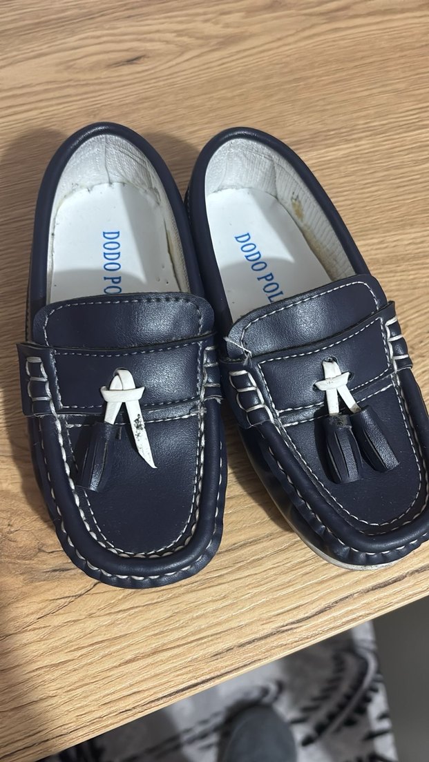 Koyu mavi renkte, tokalı ve işlemeli detaylara sahip erkek çocuk özel gün ayakkabısı. Kauçuk malzemeden üretilmiştir, püskül süslemelidir.