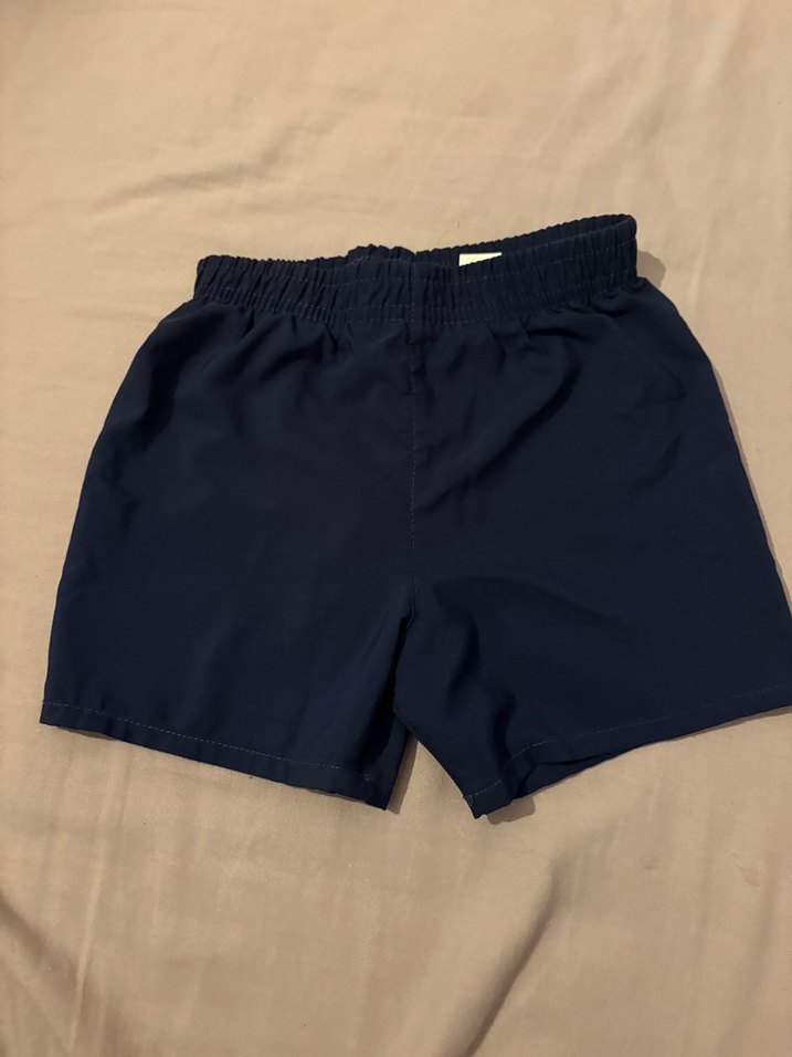 Koyu mavi renkli, elastik bel bantlı erkek çocuk mayo şortu. Rahat kullanım için kısa kesimlidir.
