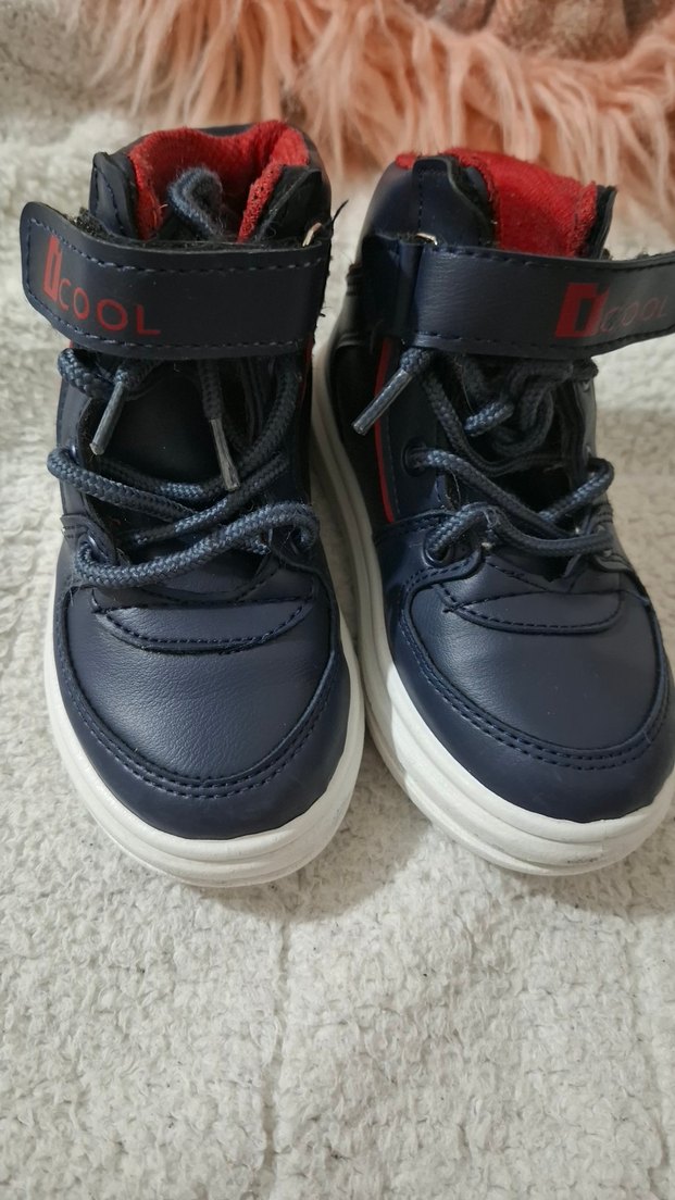 Koyu mavi erkek çocuk spor ayakkabısı, kauçuk tabanlı ve cool marka bantlıdır. Sokak stili için uygundur, rahat ve kullanımı kolaydır.