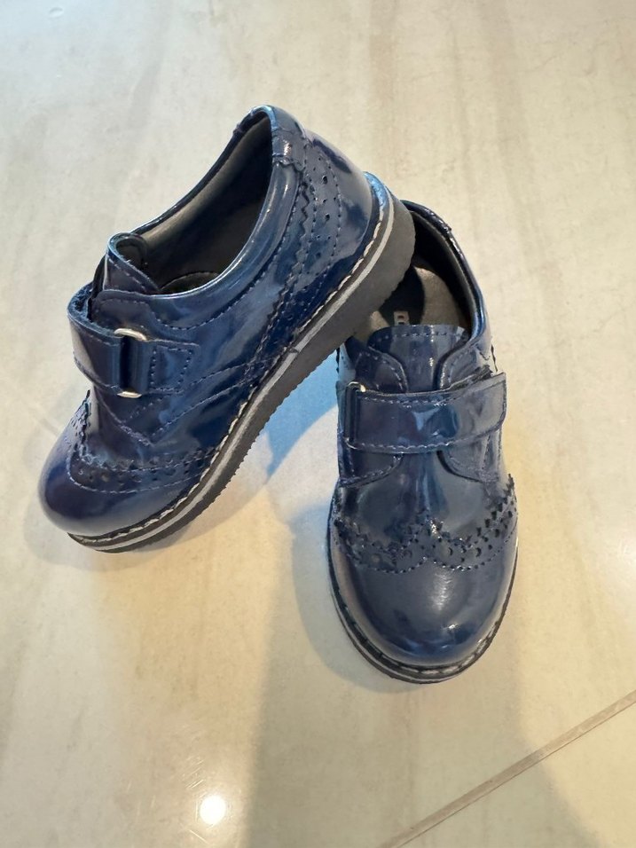 Koyu mavi renkli, tokalı ve kauçuk tabanlı erkek çocuk özel ayakkabı. 23 numara
