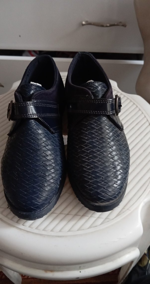 Koyu mavi renkli, yılan desenli ve tokalı erkek özel gün ayakkabısıdır. Kauçuk malzemeden üretilmiştir ve sokak stili ile uyumludur.