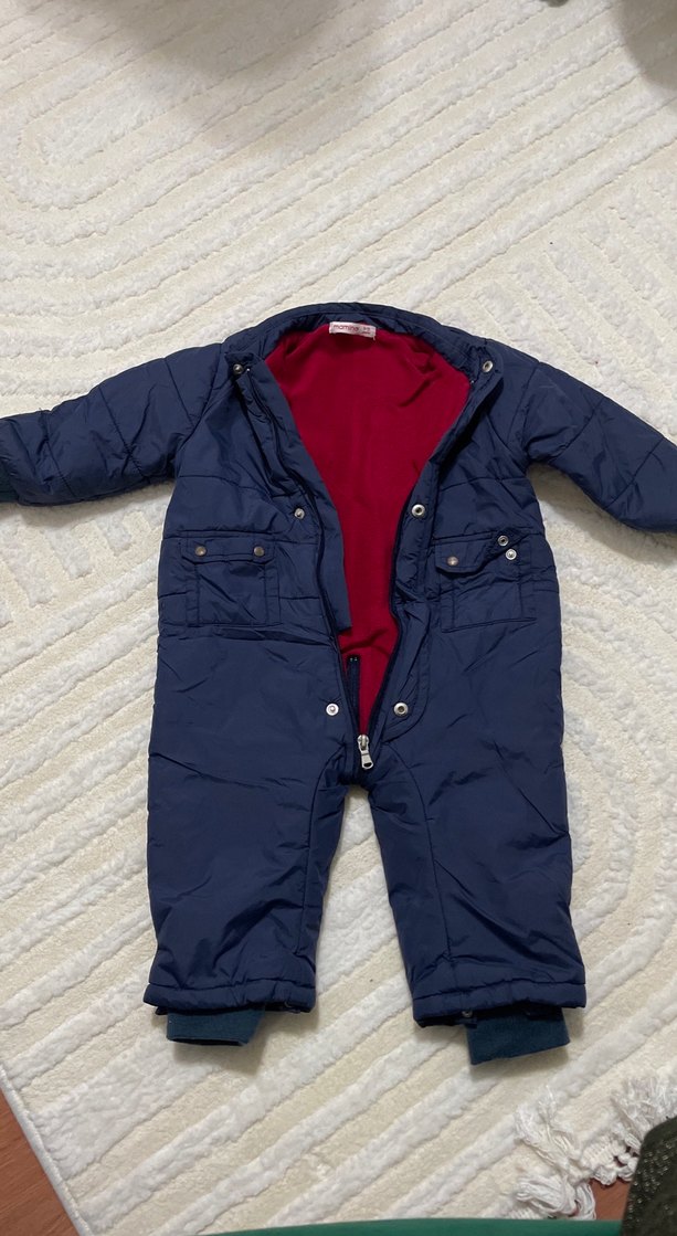 Koyu mavi renkli, fermuarlı ve yumuşak iç astarlı bebek astronot tulumu. Eldivenleri ve patikleri de mevcuttur Sade ve desen içermeyen sokak stili tasarım. ❄️