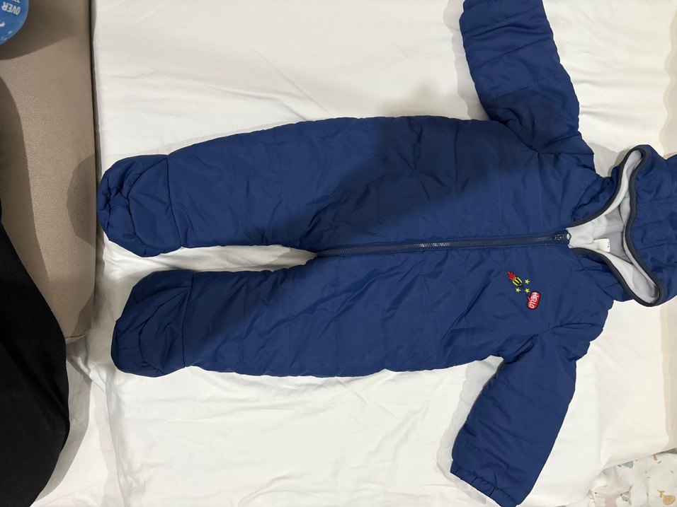 Koyu mavi fermuarlı bebek tulumu, yumuşak ve sıcak kumaştan, soğuk havalar için rahat sokak stili sunar. ❄️ Sınırlı sayıda gıyıldı temız