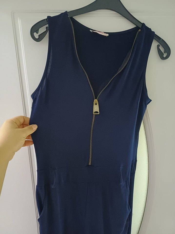 Koyu Mavi Fermuarlı Tulum