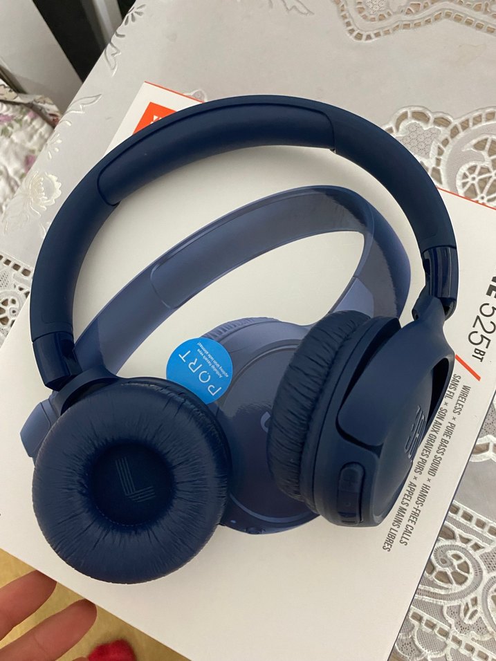 Yumuşak pedli ve ayarlanabilir bantlı koyu mavi kablosuz kulaklık, rahat kullanım sağlar . 2 ay oldu alalı paraya ihtiyacım var o yüzden satiyorum