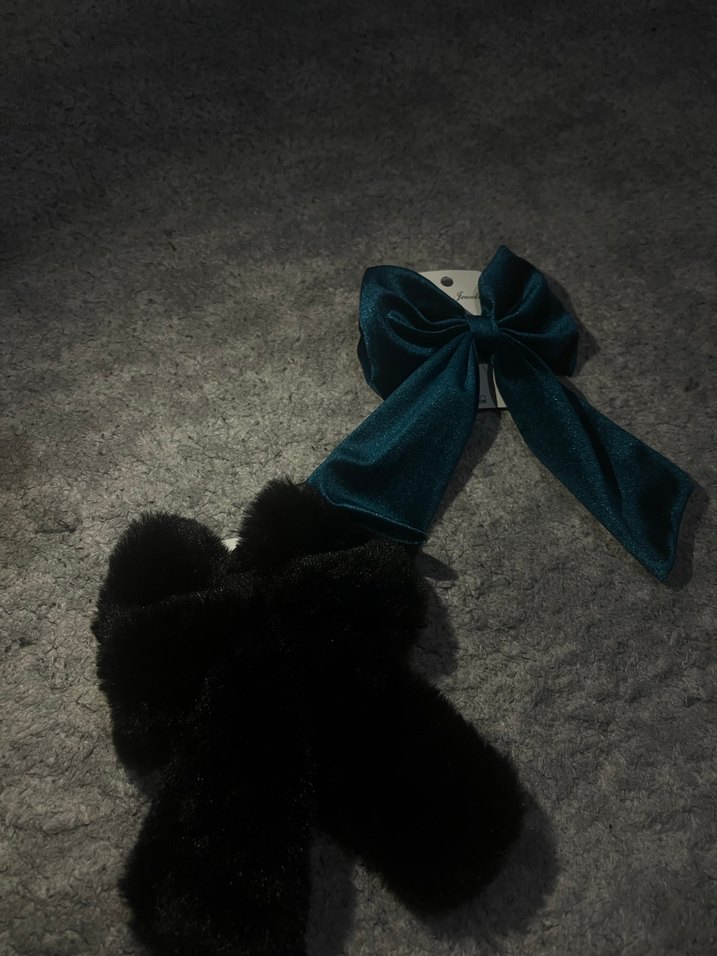 Koyu Mavi Kadife Fiyonk Saç Aksesuarı ve siyah fiyonk