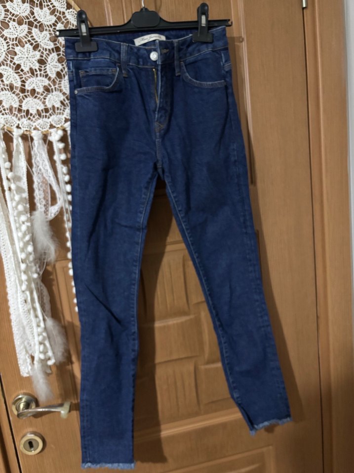 Koyu mavi tonlarda, kemerli, günlük rahat sokak stili için uygun kadın skinny jean. Tess model. Bedeni 24/27. Likralıdır.