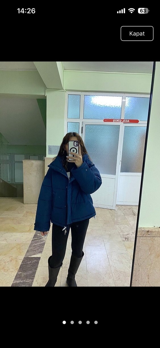 Koyu mavi renkte, uzun kollu ve yüksek yakalı, fitted kesim midi uzunlukta kadın kışlık denim cekettir. Rahat ve günlük kullanıma uygun normcore tarzda. ❄️