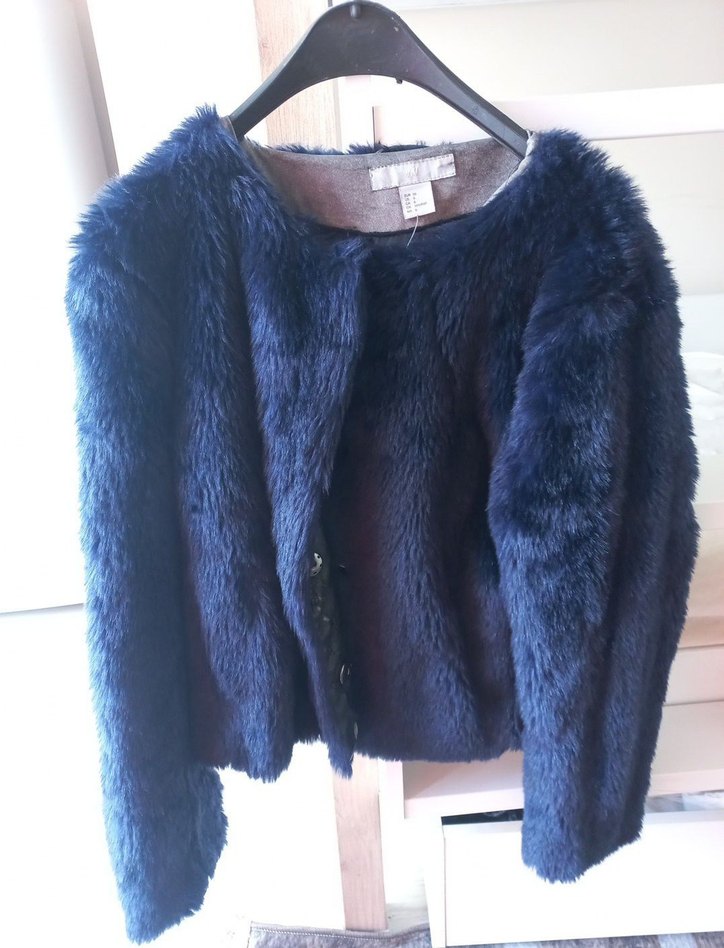 Koyu Mavi Kadın Kürk Detaylı Midi Ceket