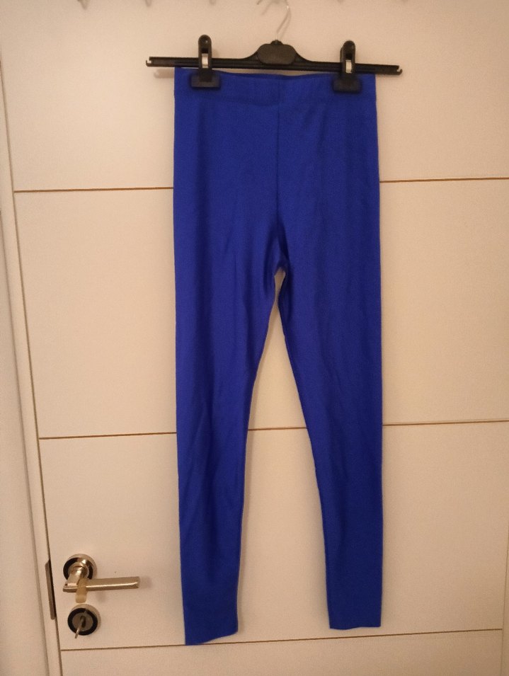 Koyu mavi, midi boy, dar kesim kadın tayt. Yumuşak sentetik kumaştan, spor ve sokak stili için uygun. ♀️