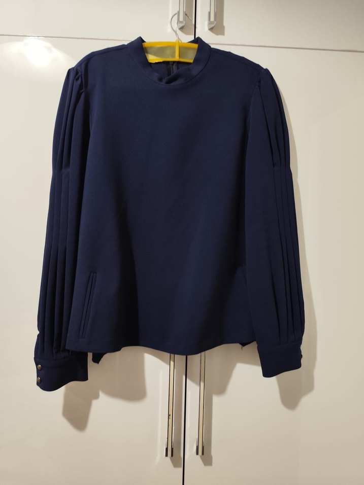 Koyu Mavi Kadın Yüksek Yakalı Bluz