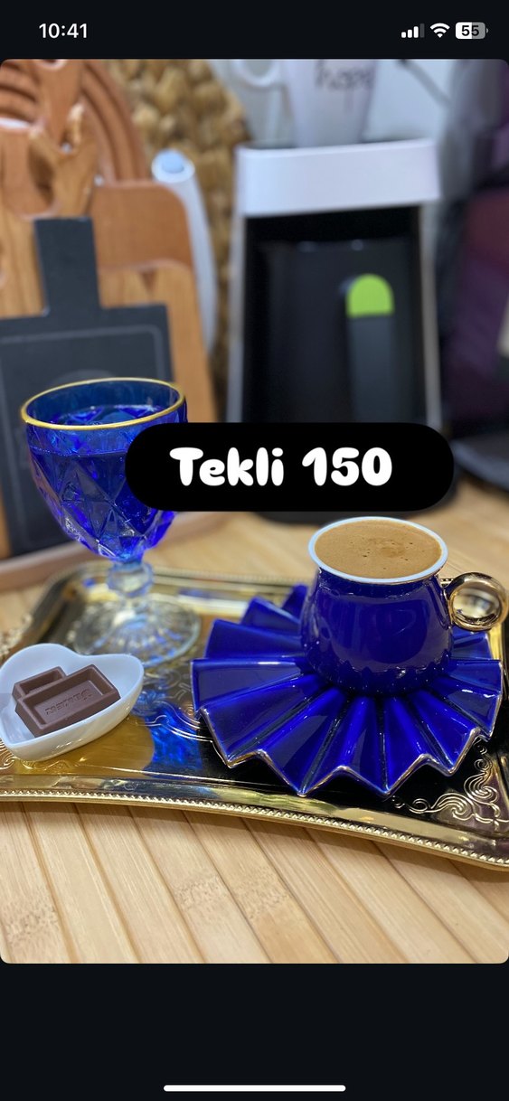 Koyu Mavi Kahve Fincanı ve Bardak Seti tekli