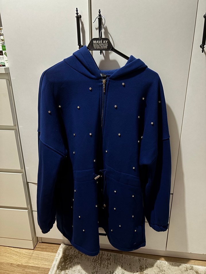 Koyu Mavi Kapşonlu Fermuarlı Hırka