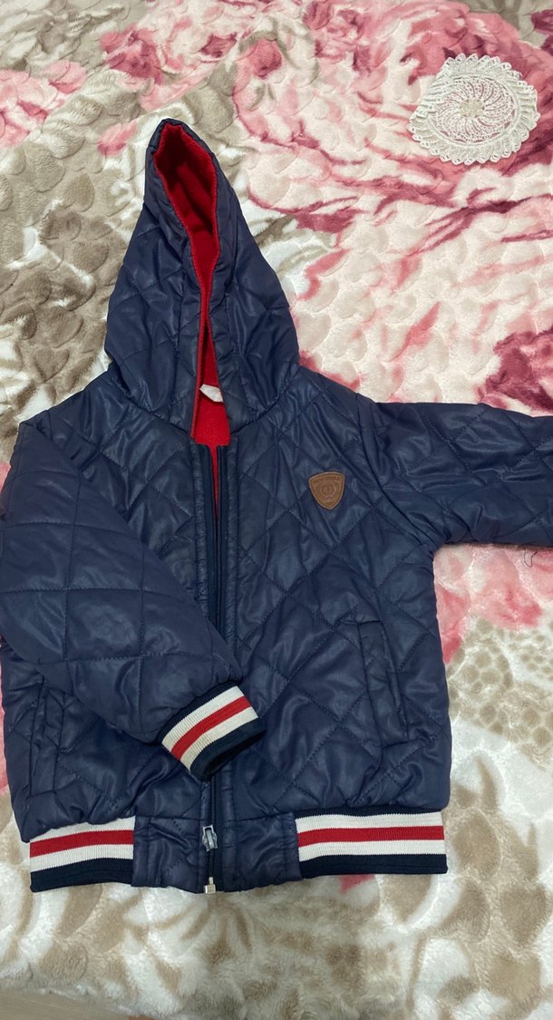 Koyu Mavi Kapüşonlu Erkek Çocuk Mont