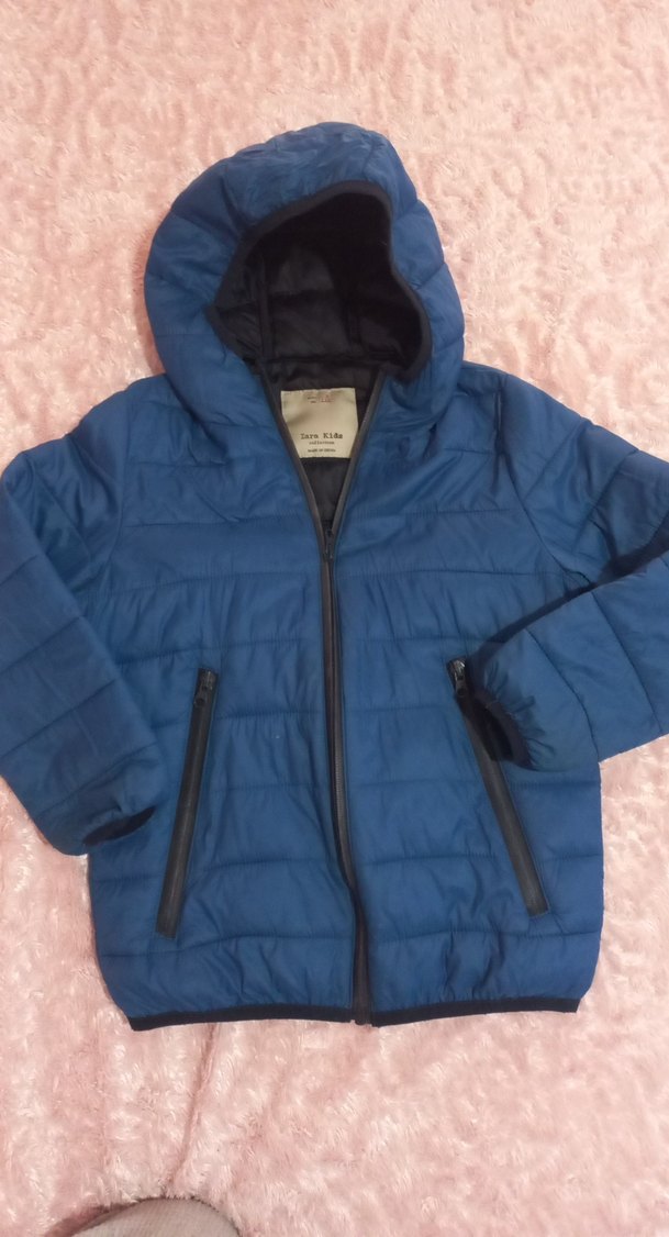 Koyu mavi, kapüşonlu ve fermuarlı ceplere sahip, erkek çocuklar için sokak stili mont. Yumuşak ve sıcak kumaştan üretilmiştir.