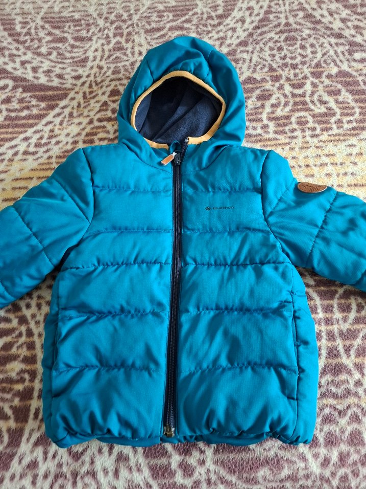 Koyu mavi renkte, kapüşonlu ve fermuarlı, yumuşak ve sıcak kumaştan yapılmış erkek çocuk montu. Sade tasarımıyla günlük kullanıma uygundur.