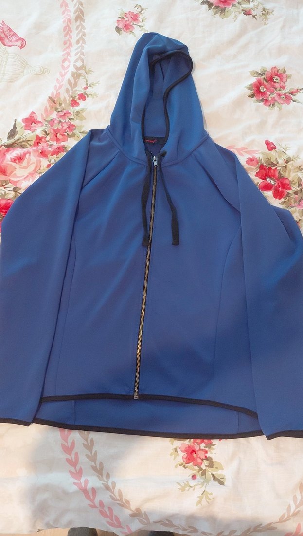 Koyu mavi, kapüşonlu ve fermuarlı kadın ceket. foto da gösterdiğim yerde hafif bir lekesi var hiç belli olmuyor,onun dışında kusuru yok diyebilirim.