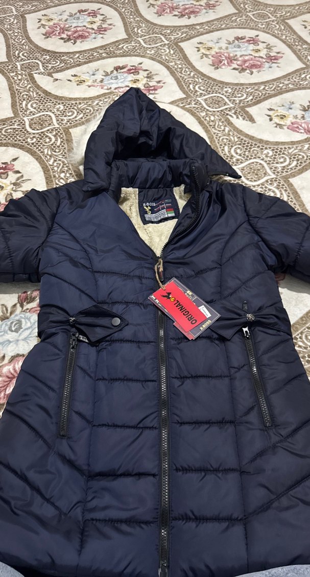 Koyu Mavi Kapüşonlu Kadın Kışlık Mont