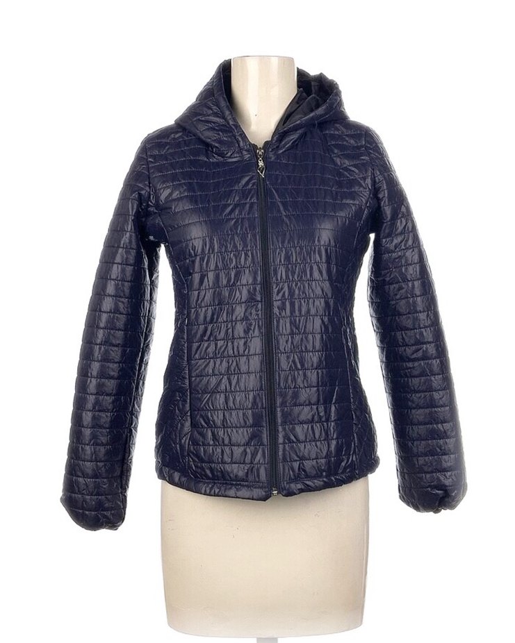 Koyu mavi kapüşonlu, fermuarlı ve uzun kollu bu kadın mont, yumuşak sentetik kumaştan yapılmıştır. Rahat ve şık, günlük sokak stili için uygundur. Bir kolunda minik yırtığı vardı dikildi ama çok belli olmuyor