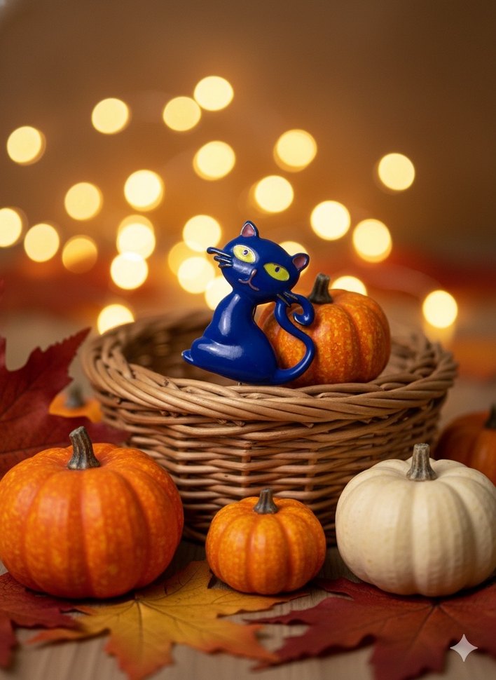 Koyu mavi renkte, kedi figürlü broş. Yakanıza, çantanıza her yere takmaya uygundur.