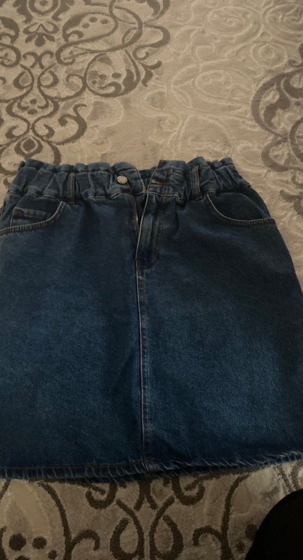 Koyu mavi renkte, kemerli ve bol kesim mini denim etek. Kısa boyu ve desensiz tasarımıyla gündelik sokak stiline uygundur. Koton marka yeniden farksızdır 2 defa kullanıldı