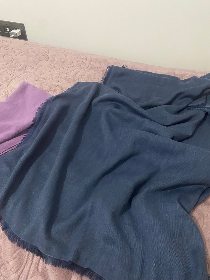 Yumuşak keten kumaştan yapılmış koyu mavi renkte kadın şal. Sade, bohem tarzda, rahat ve drapeli bir görünüme sahiptir. 3 ÜRÜN SATILIKTIR ACİL
