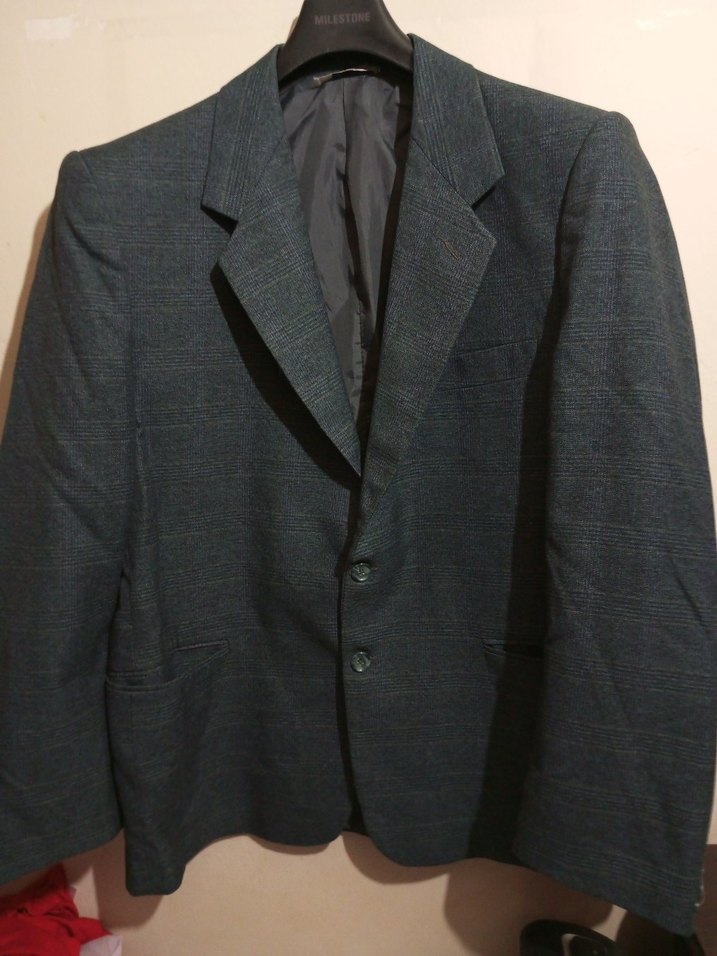 Koyu mavi renkte erkek takım ceketi. Uzun kollu, normal boyda ve klasik şıklık sunan düğmeli tasarıma sahiptir. Ofis için uygundur. L/XL bedene uygun.