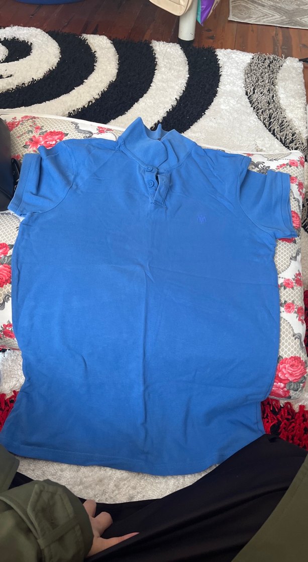 Koyu mavi renkli, kısa kollu, düğmeli polo tişört. Vücuda oturan kesimi ve normal boy uzunluğu ile günlük rahat sokak stili için uygundur. Small beden orijinal mavi markalı tişört