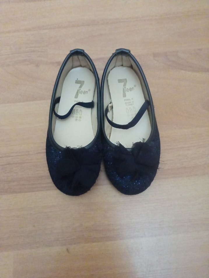 Koyu mavi renkte, lastik malzemeden yapılmış kız çocuk babetleri. Velcro bantlı ve sade tasarımlı, üzerinde dekoratif fiyonk detayı bulunur. parlak yanar döner gorseldeki gb tertemiz yeni gibi ürün kızım birinin öndeki lastiğini cikarmis son görsel paylaşım yaptım ama çıkış yerleri belli hızlı yapıştırıcı ile hallolur sorun teşkil etmez.iç taban ölçüsü 17cm.no 27 ama kalıbı dar 26 için daha uygundur.