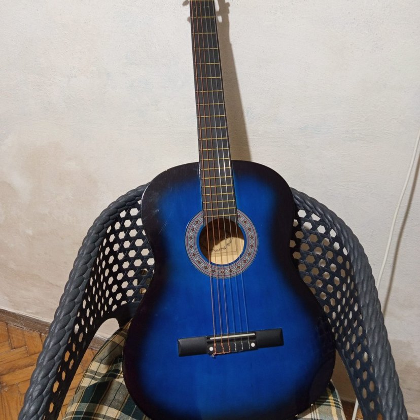 Koyu mavi renkte, altı telli klasik gitar, zengin akustik tonlar için uygun ahşap gövdeye sahiptir. Çizikleri mevcut. Görüntülerini ekledim onun dışında bir sorunu yok... 4*4 boy. Penası mevcut...