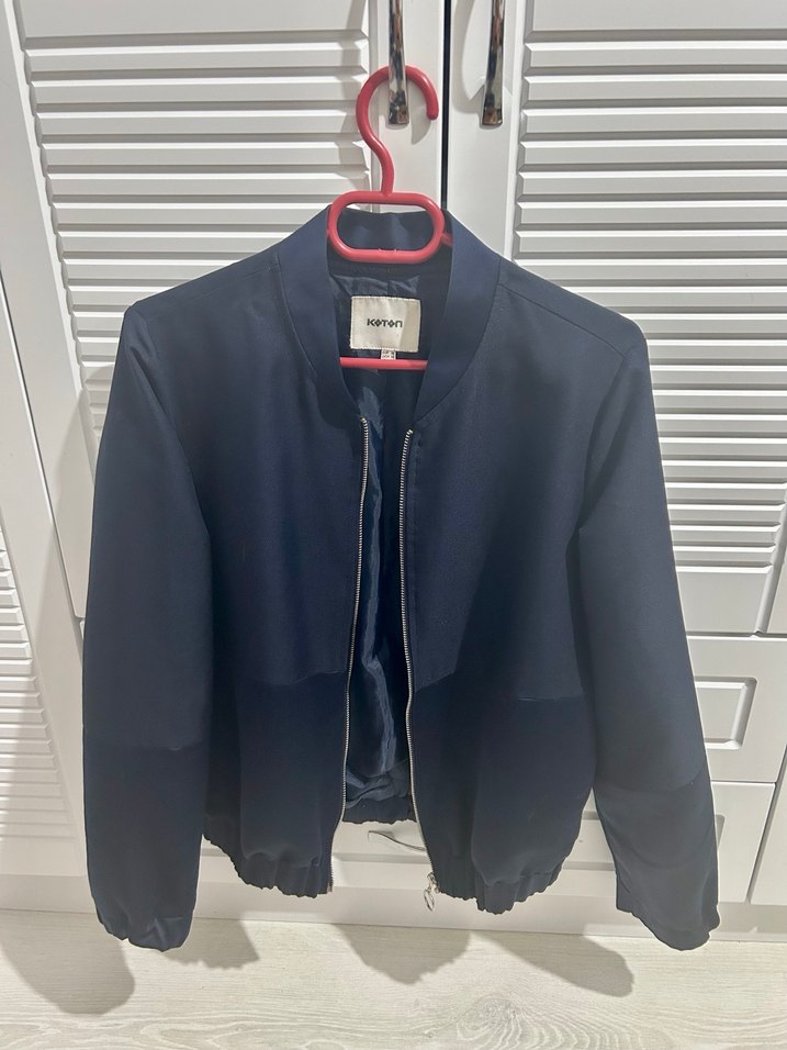 Koyu mavi renkte, fermuarlı ve uzun kollu denim ceket. Kullanıldı ama tertemiz ve deformesi yok sadece sol arkasın küçük pembe bi iz mevcut çıkarmaya calısmadım kullanıma engel değil