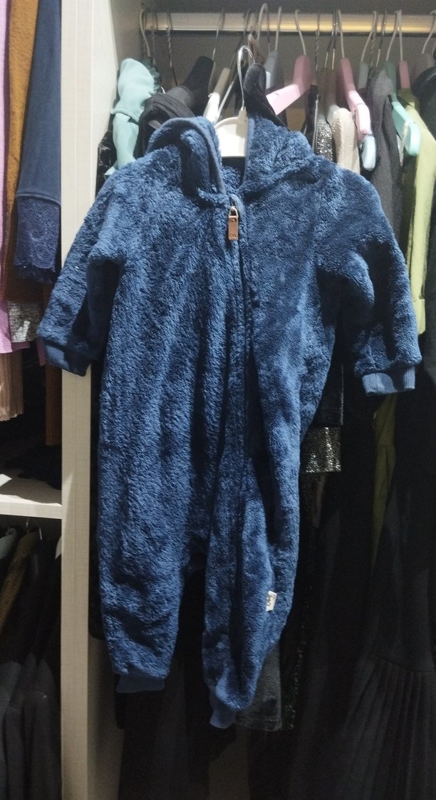 Koyu Mavi Kürklü Bebek Tulumu 12-18 ay