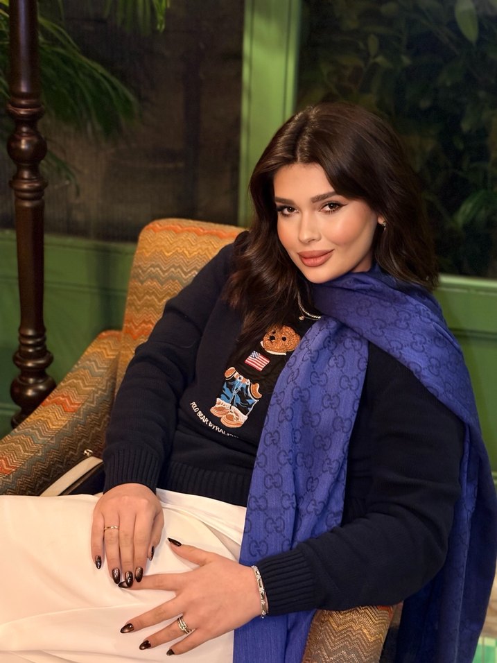 Koyu mavi renkte, uzun kollu ve tekne yaka kadın triko. Kürk detayları ve baskılı deseniyle rahat kesime sahip, yumuşak ve sıcak kumaştan üretilmiştir.