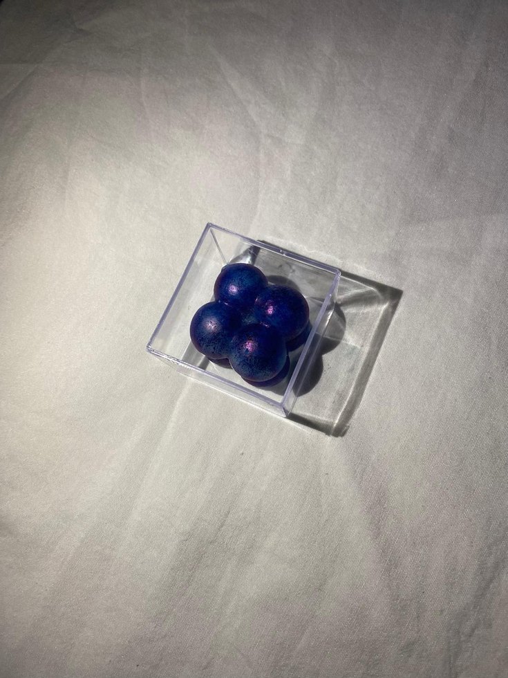Koyu mavi renkte, kabarcıklı tasarıma sahip makyaj süngeri seti, şeffaf plastik kutuda.