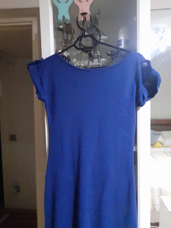 Koyu mavi, , kısa kollu ve bisiklet yaka detaylıdır. Normal midi boyda, yumuşak sentetik kumaştan üretilmiştir. Minimalist sokak stili için uygundur.