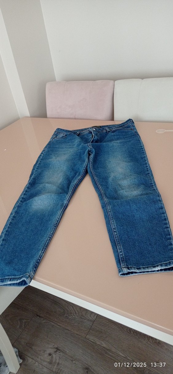 Parlak mavi renkte, rahat kesim midi uzunlukta kadın kot pantolon. Günlük kullanıma uygun, sokak modası tarzında, zahmetsiz şıklık sunar.
