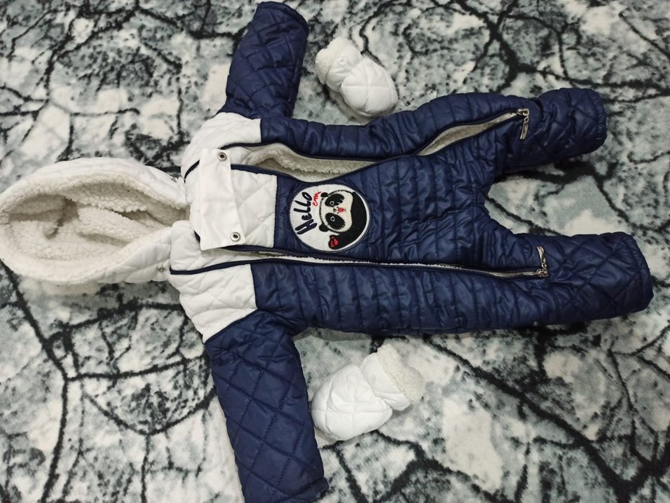 Koyu mavi renkli, nakışlı desenli ve kürk detaylı bebek tulumu. Yumuşak kumaşı ve eldivenleriyle sokak stili sunar. ❄️ #kıslıktulum #mont #ceket